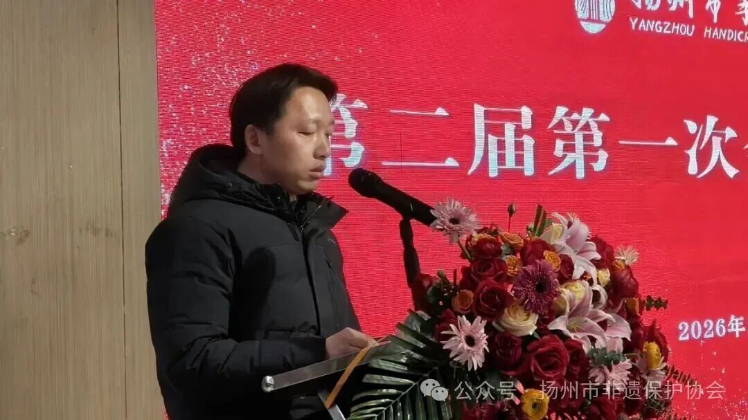 扬州市文广旅局非遗处四级主任科员夏成胜希望新一届手工艺协会和全市手工艺界同仁要坚持守正创新,在传承弘扬优秀传统文化上展现新作为,要深化融合发展,在服务高质量发展上作出新贡献,要加强自身建设,在凝聚行业合力上实现新提升,要拓展传播渠道,在提升扬州手工业影响力上开创新局面。