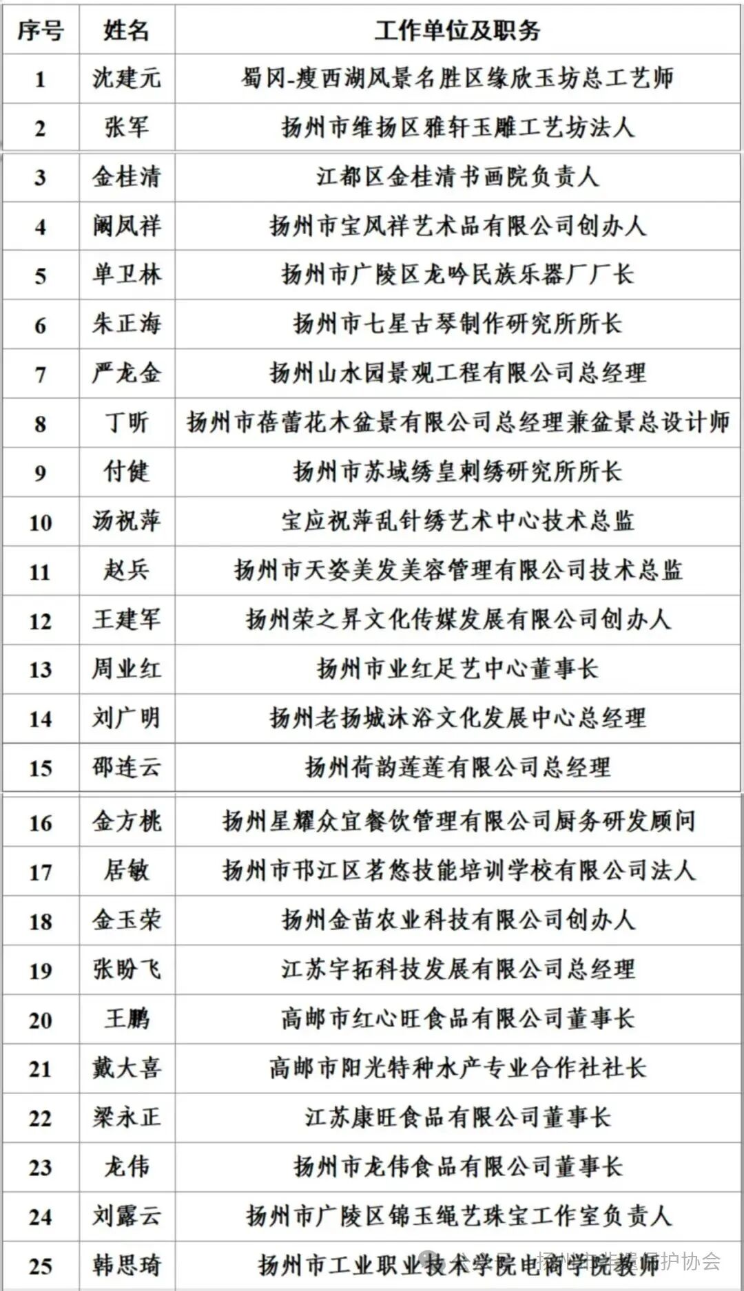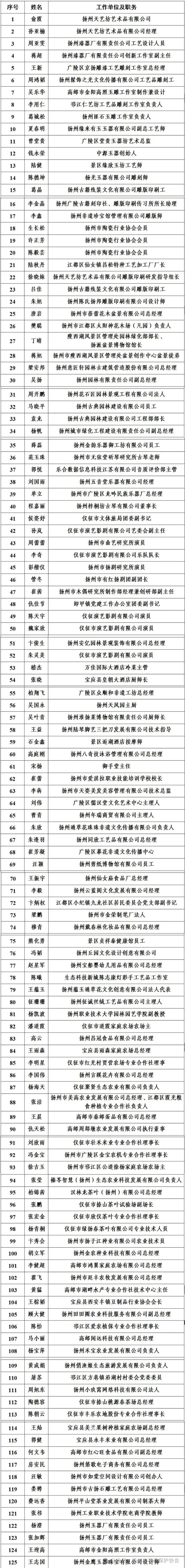 近日,江苏省委人才办、江苏省人社厅公布的第三批省级乡土人才“三带”培养对象名单传来捷报,扬州市非物质文化遗产保护协会再创佳绩:协会副会长单卫林,常务理事张军、赵兵,理事周业红、王鹏等9名会员入选“三带”名人。协会常务理事李全等21名会员获评“三带”能手。协会理事郭悦、柏翔飞、单立等38名会员或会员单位员工跻身“三带”新秀,总计68人的入选规模,既展现了扬州非遗人才梯队的雄厚实力,更印证了协会“传帮带”培育机制的丰硕成果。